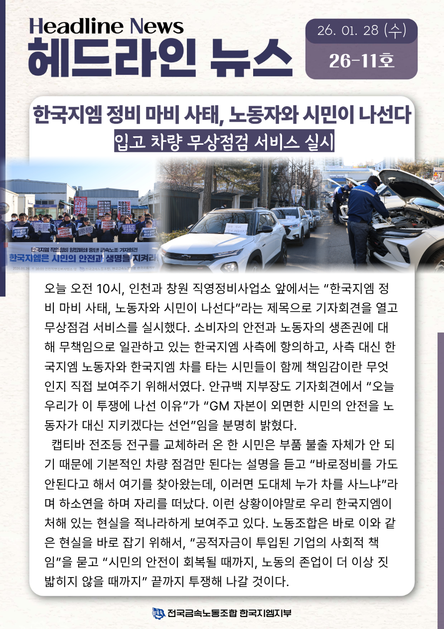 Çѱ¹Áö¿¥ Á¤ºñ ¸¶ºñ »çÅÂ, ³ëµ¿ÀÚ¿Í ½Ã¹ÎÀÌ ³ª¼±´Ù