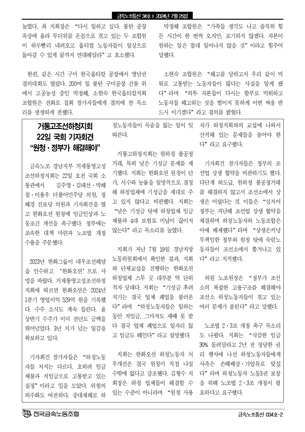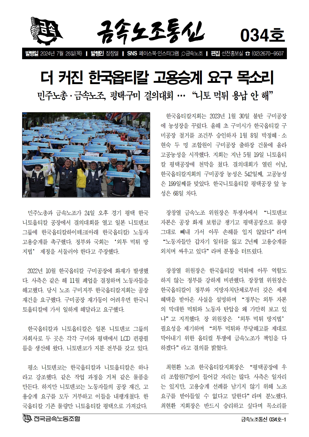 2024³â 5¿ù02ÀÏ ±Ý¼Ó³ëÁ¶ ÇöÀå¼øÈ¸´Ü Ȱµ¿º¸°í