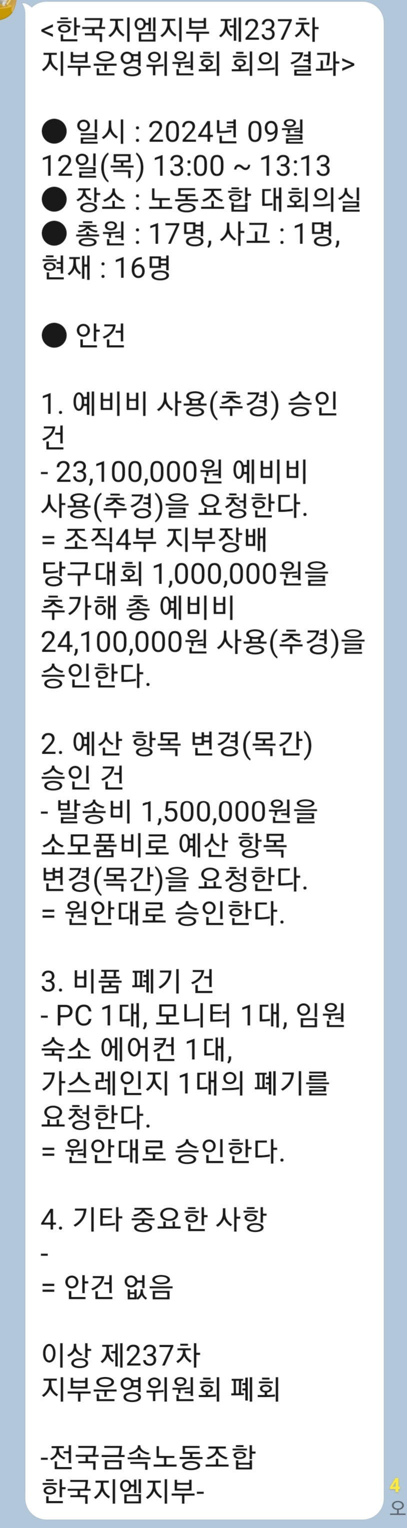 ÁöºÎ¿î¿µÀ§¿øÈ¸ ȸÀÇ °á°ú