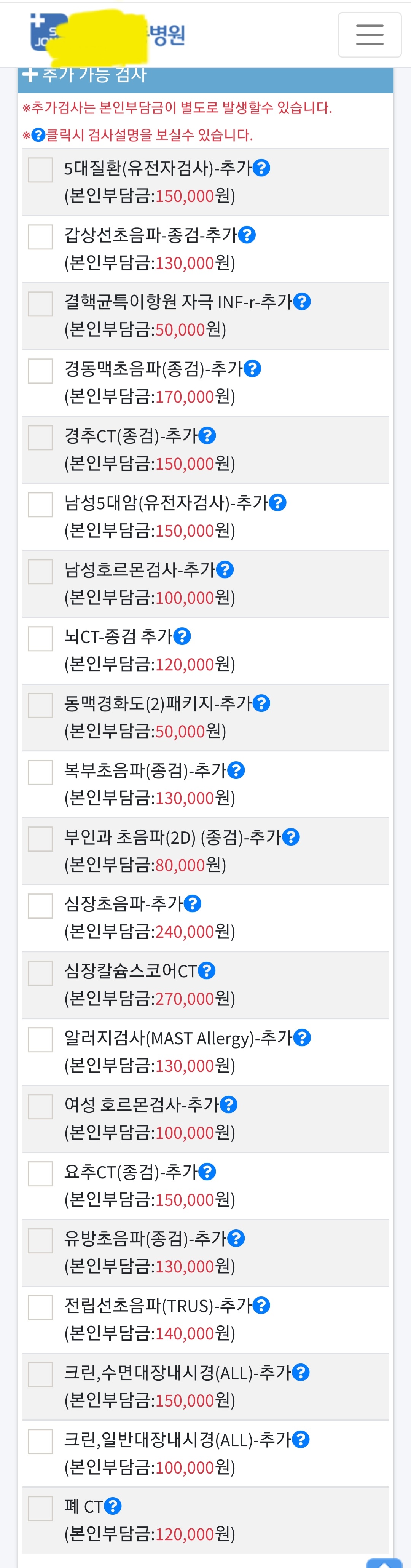 Á¾ÇÕ °Ë»ç ºñ¿ëÀ» ³ôÀÌÀÚ (ÇöÀç 3½Ê¸¸¿ø Áö¿ø)