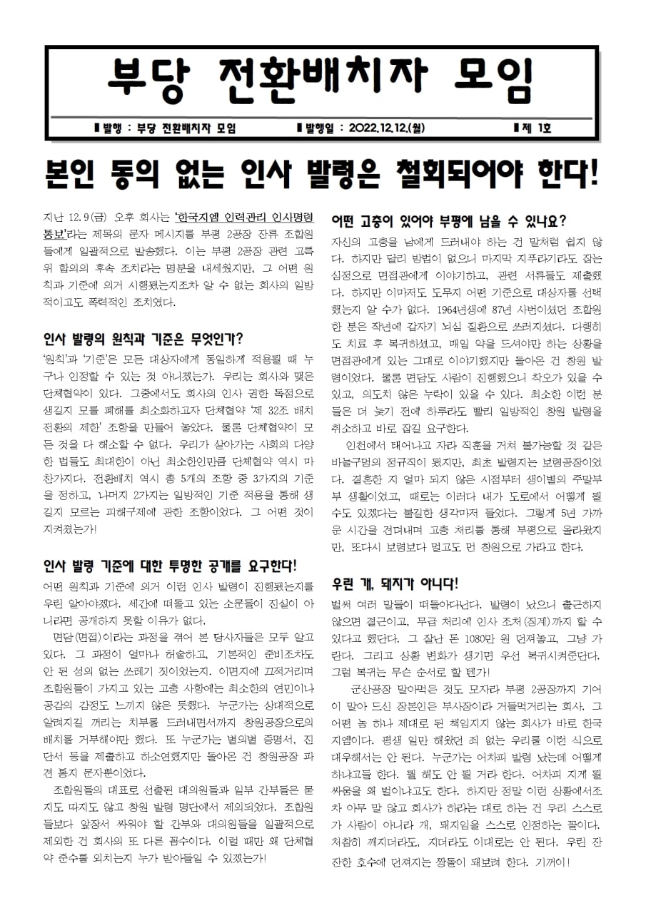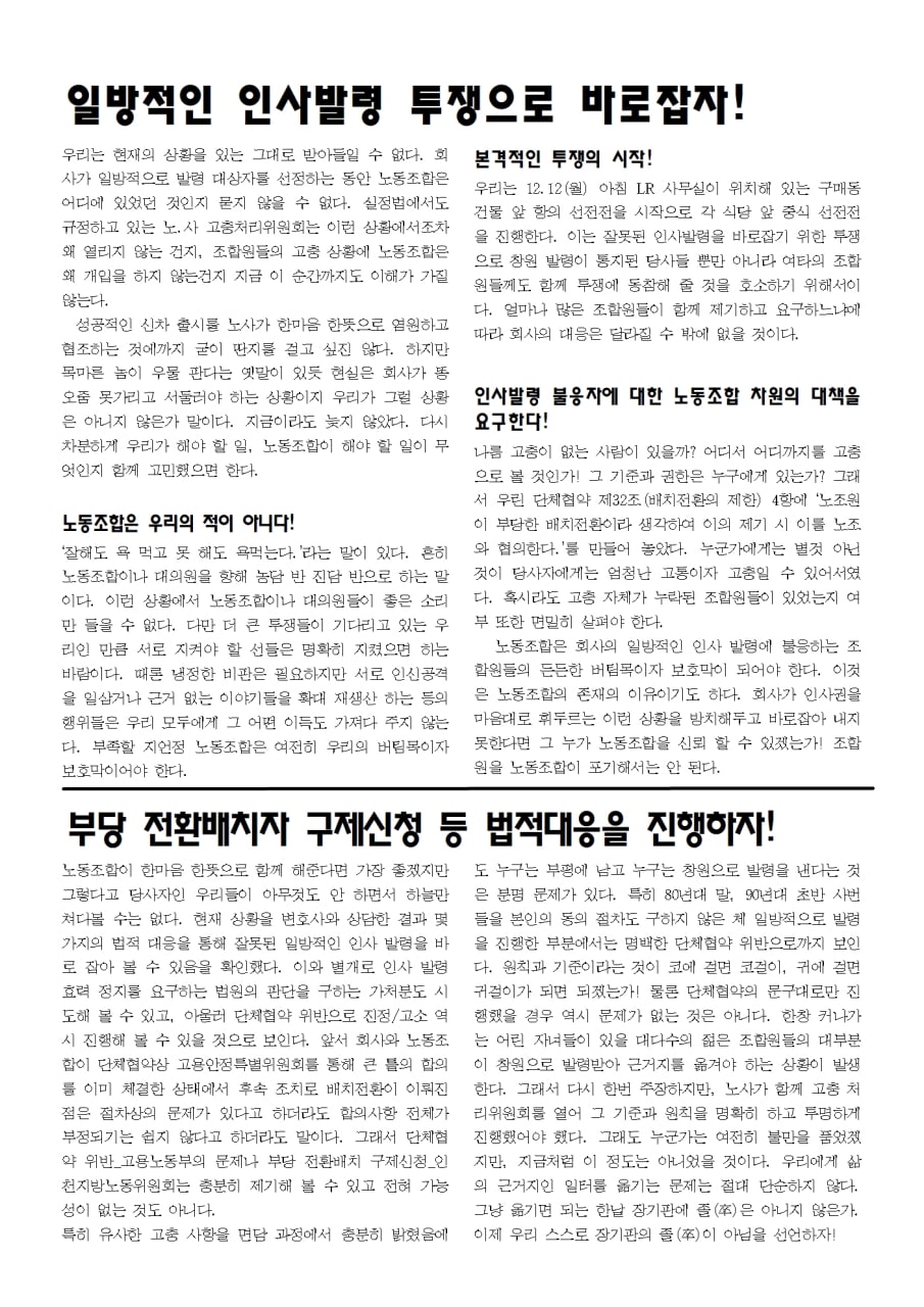 ³ëµ¿Á¶ÇÕÀº Åõ¸íÇÏ°í °øÁ¤ÇÕ´Ï´Ù