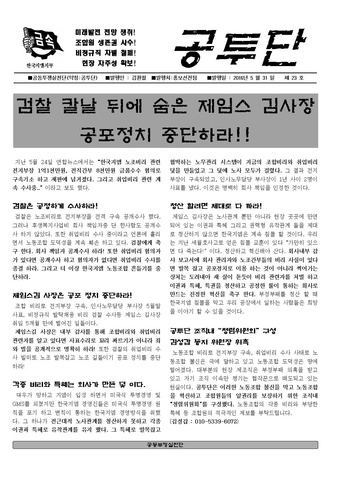 Çѱ¹Áö¿¥ÁöºÎ °øµ¿ÅõÀï½Çõ´Ü <°øÅõ´Ü 23È£ È«º¸¹°>