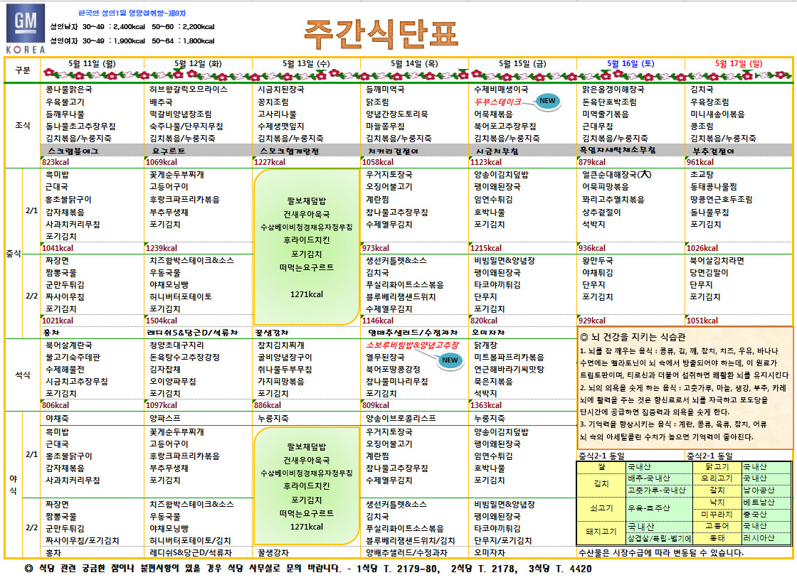 5¿ù2ÁÖÂ÷ ÁÖ°£½Ä´ÜÇ¥