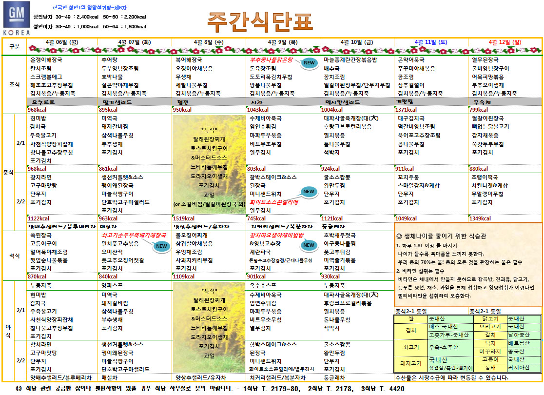 4¿ù2ÁÖÂ÷ ÁÖ°£½Ä´ÜÇ¥
