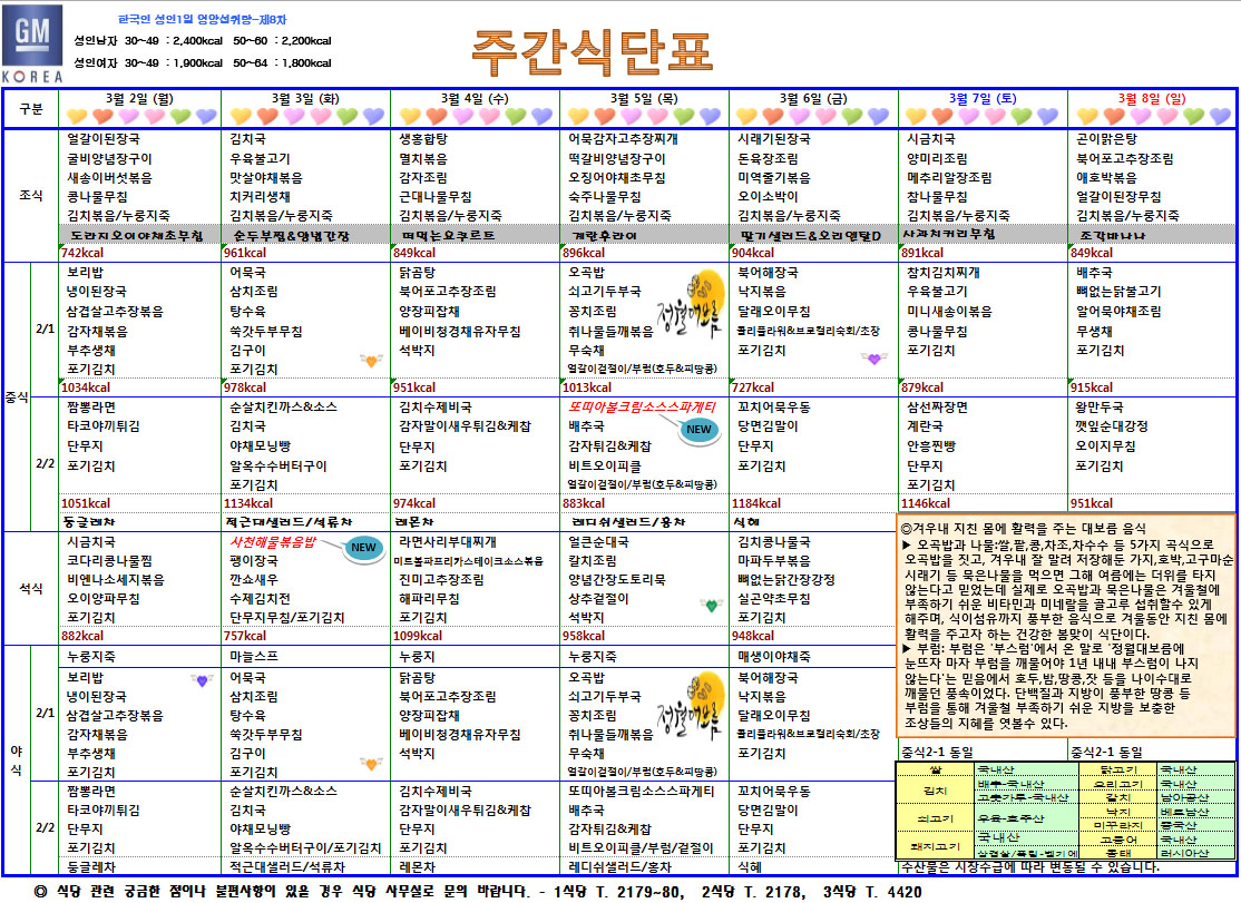3¿ù1ÁÖÂ÷ ÁÖ°£½Ä´ÜÇ¥