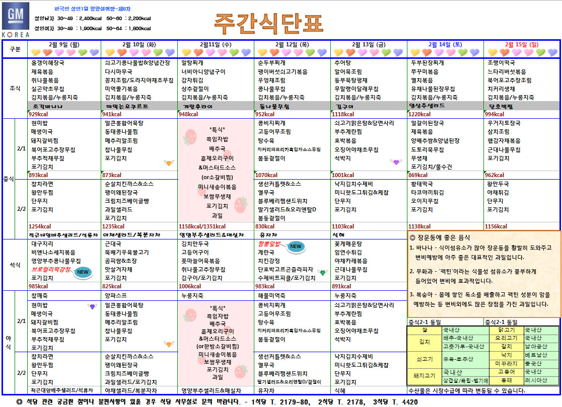 2¿ù2ÁÖÂ÷ ÁÖ°£½Ä´ÜÇ¥