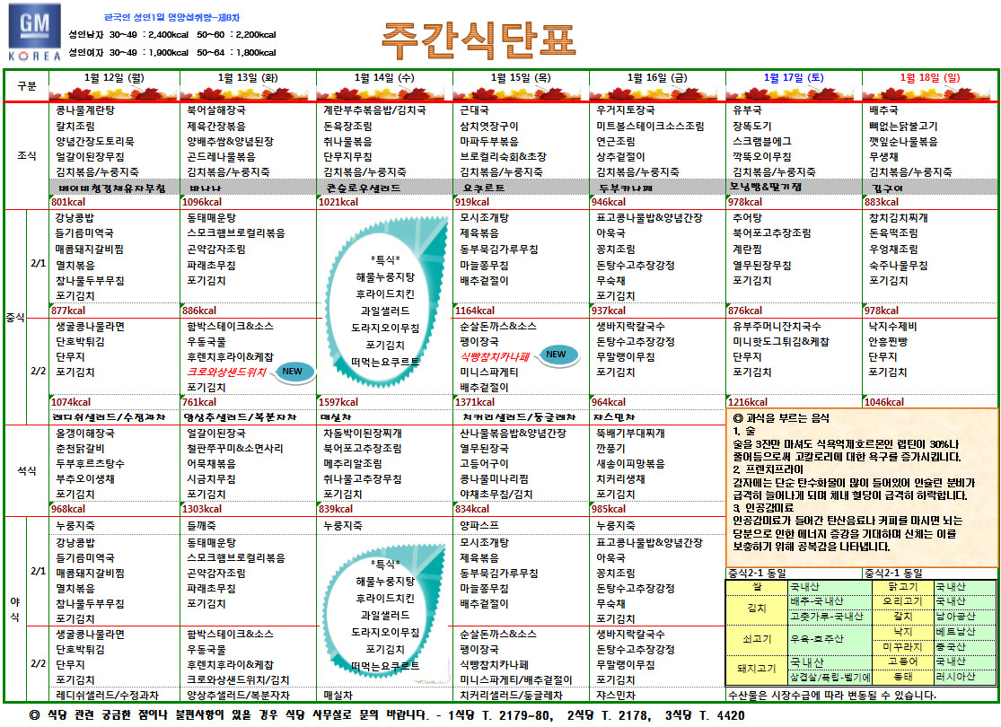 1¿ù2ÁÖÂ÷ ÁÖ°£½Ä´ÜÇ¥