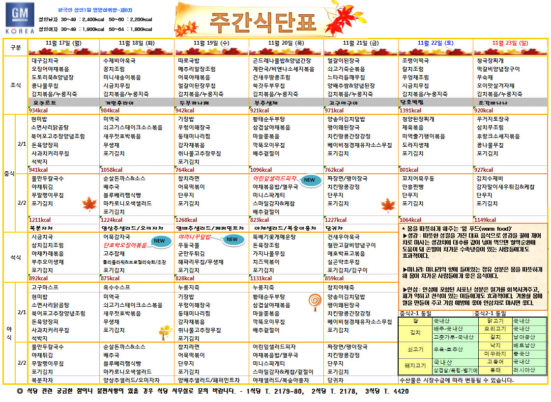11¿ù3ÁÖÂ÷ ÁÖ°£½Ä´ÜÇ¥