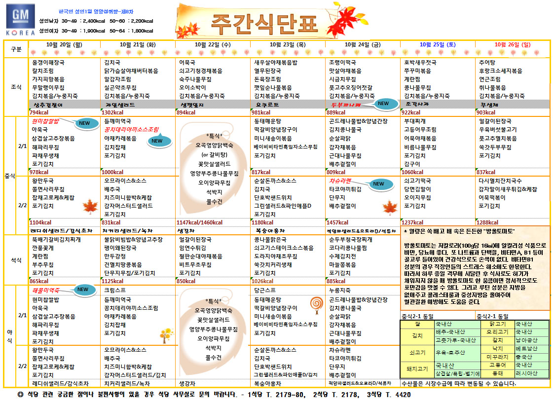 10¿ù 4ÁÖÂ÷ ÁÖ°£ ½Ä´ÜÇ¥
