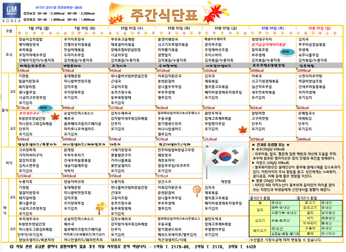 10¿ù1ÁÖÂ÷ ÁÖ°£½Ä´ÜÇ¥