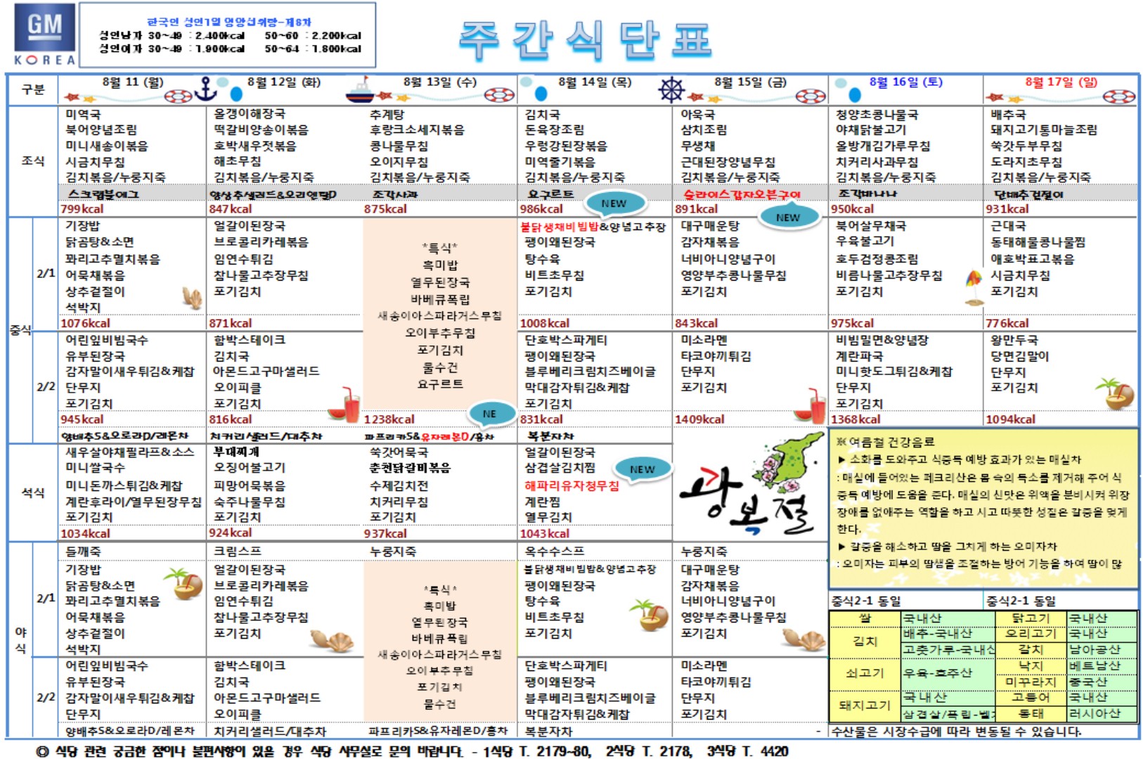 8¿ù2ÁÖÂ÷ ÁÖ°£ ½Ä´ÜÇ¥