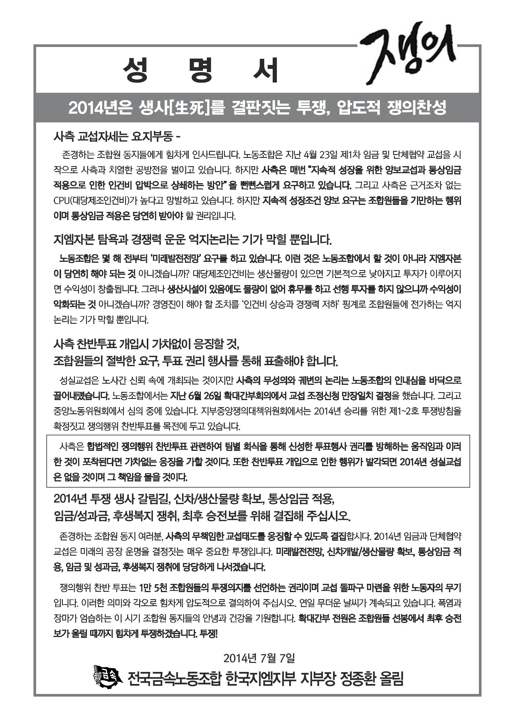2014³âÀº »ý»ç¸¦ °áÁ¤Áþ´Â ÅõÀïÀ»Àü°³