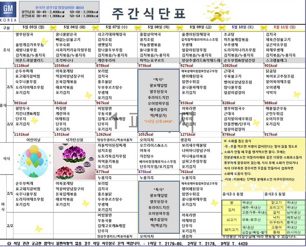5¿ù1ÁÖÂ÷ ÁÖ°£½Ä´ÜÇ¥