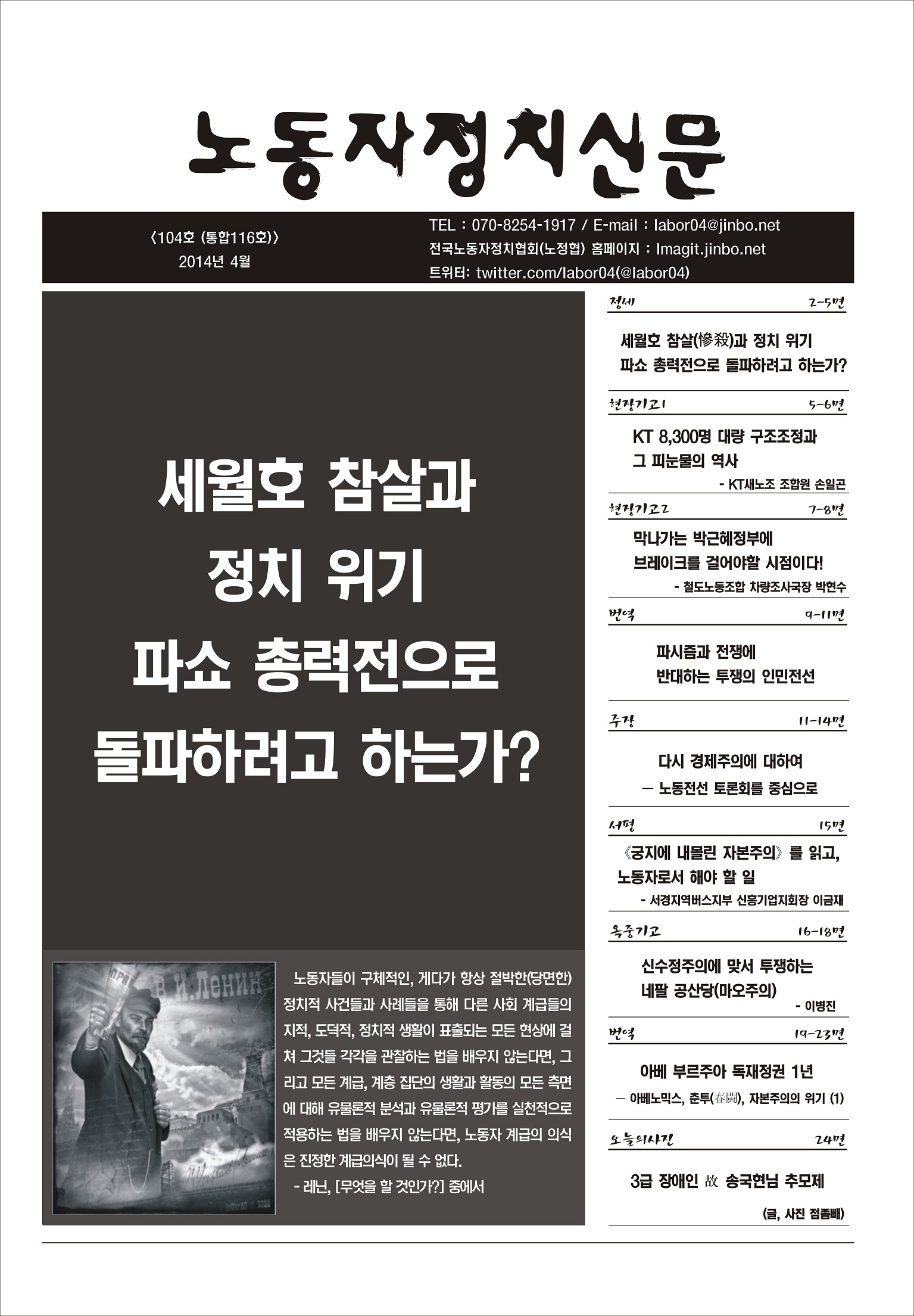 ³ëµ¿ÀÚÁ¤Ä¡½Å¹® [104È£(ÅëÇÕ116È£)]¼¼¿ùÈ£ Âü»ì(óÓ߯)°ú Á¤Ä¡ À§¡¦