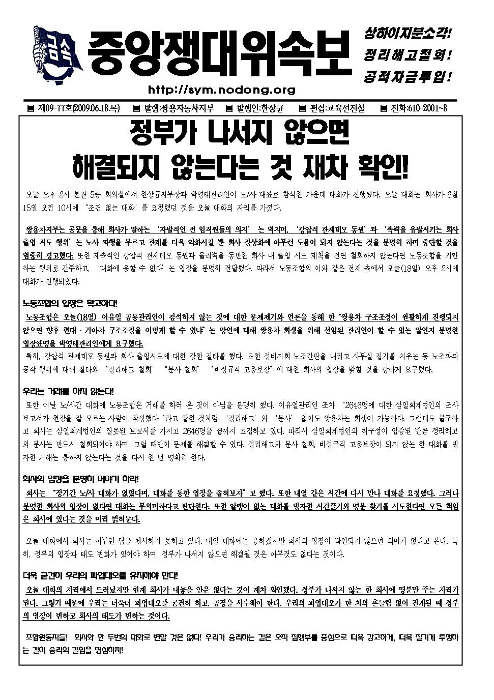 Á¤ºÎ°¡ ³ª¼Áö ¾ÊÀ¸¸é.....(½ÖÂ÷ ¼Óº¸, 2009.06.18)