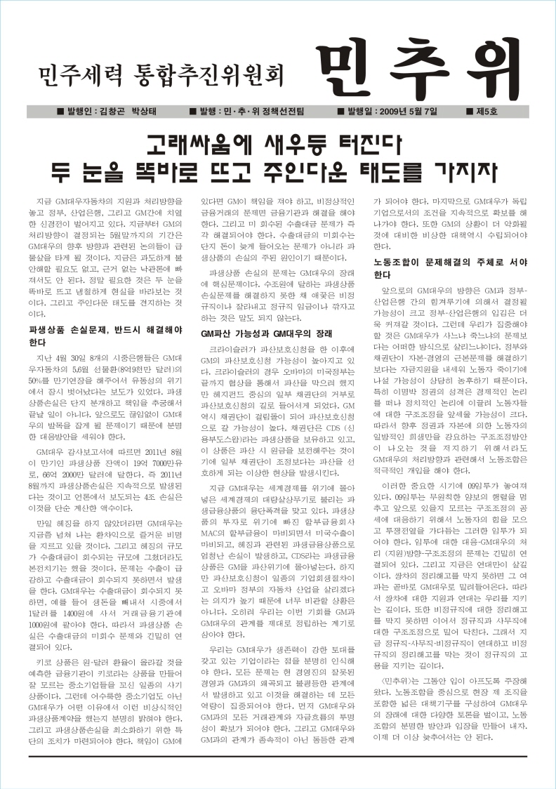 ¸Þ¾Æ¸®/5¿ù 9ÀÏ] ´ë¿ìÂ÷¿Í GM´ë¿ì (Çѱ¹ÀϺ¸)