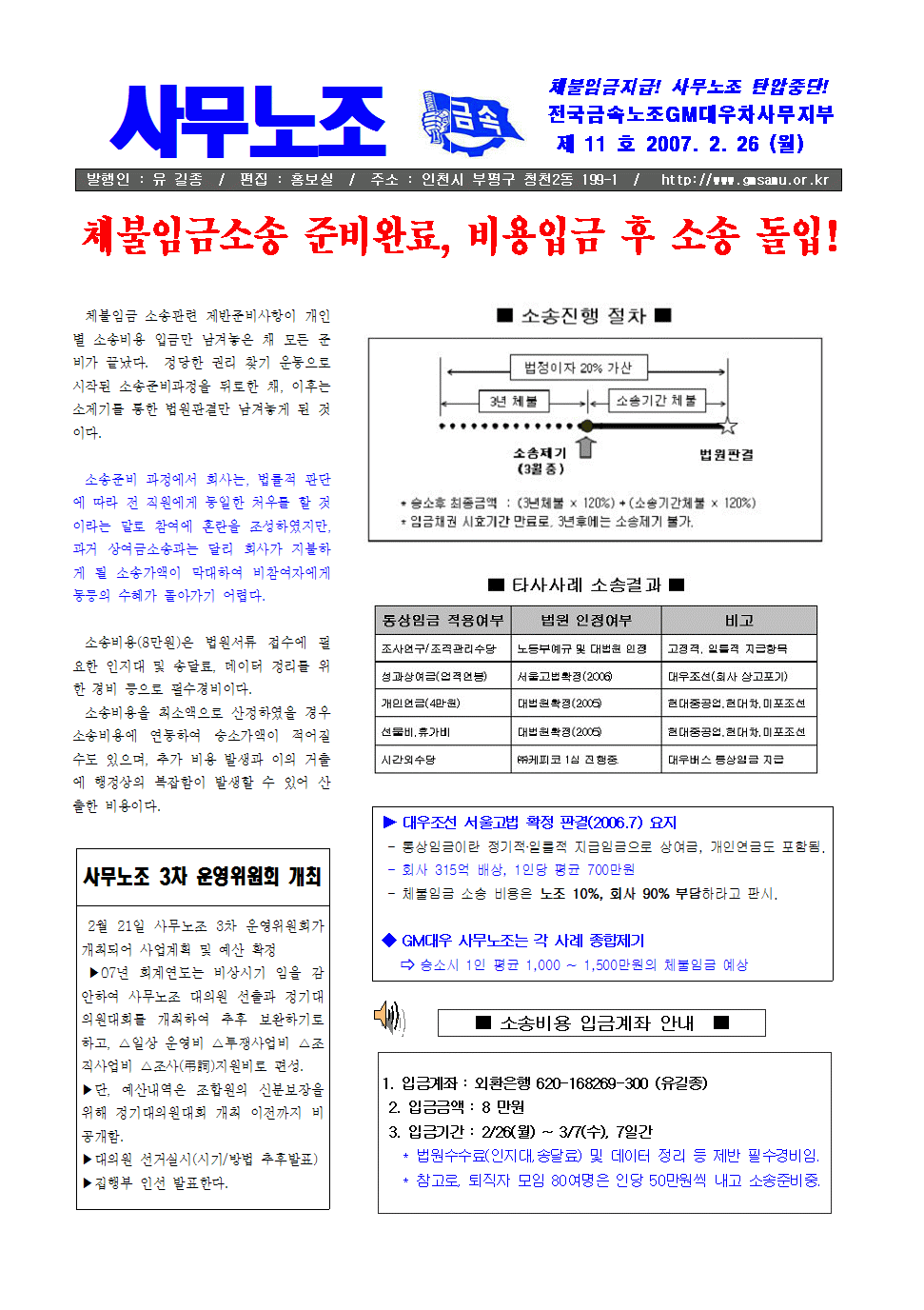 »ç¹«³ëÁ¶ ¼Ò½ÄÁö11È£-üºÒÀÓ±Ý¼Ò¼Û & ¦Åü»ç¹«³ëÀ§?
