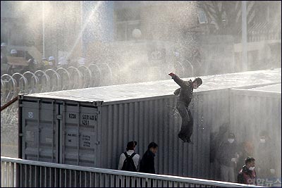 Àü±¹ºñÁ¤±ÔÁ÷¿¬´ëȸÀÇ¿Í Çö´ë.±â¾ÆÂ÷, Çö´ëÁß°ø¾÷ ³ëÁ¶ ºñÁ¤±ÔÁ÷Áöȸ, ´ë±¸.°æºÏ °Ç¼³³ëÁ¶ µî 5°³ ºñÁ¤±ÔÁ÷³ëÁ¶ ¼Ò¼Ó ±Ù·ÎÀÚ 200¿© ¸íÀÌ 26ÀÏ ¿ÀÈÄ ¿¾ GM´ë¿ìÂ÷ ¼Ò¼Ó ÇØ°í ºñÁ¤±ÔÁ÷ ±Ù·ÎÀÚ°¡ °í°ø³ó¼ºÀ» ¹úÀ̰í ÀÖ´Â ÀÌ È¸»çÀÇ Ã¢¿ø°øÀå ¾Õ¿¡¼ °øÀå ¾ÈÀ¸·Î ÁøÀÔÇϱâ À§ÇØ ÄÁÅ×À̳ʸ¦ °È¾î³»·Á ÇÏÀÚ »çÃøÀÌ ¹°´ëÆ÷¸¦ ½î¸ç ¸Â´ëÀÀÇϰí ÀÖ´Ù. ¨Ï¿¬ÇÕ´º½º