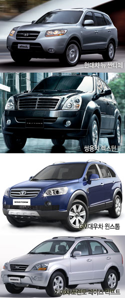 ½Ö¿ëÀÚµ¿Â÷°¡ 28ÀÏ ¼º´ÉÀ» ´ëÆø Çâ»ó½ÃŲ ¾ß½ÉÀÛ ·º½ºÅÏ¥±¸¦ ¼±º¸À̰í, 4¿ùÃÊ ±â¾ÆÀÚµ¿Â÷°¡ ½î·»Åä ÆäÀ̽º¸®ÇÁÆ®(F/L, ºÎºÐ¼öÁ¤) ¸ðµ¨À» ³»³õ´Â°¡ Çϸé, 6¿ù¿£ GM´ë¿ìÀÚµ¿Â÷°¡ ù SUVÂ÷·®ÀÎ À©½ºÅèÀ» ÀÕµû¶ó ³»³õÀ» ¿¹Á¤ÀÌ´Ù. µû¶ó¼ ±âÁ¸ ÁßÇü SUV ½ÃÀå¿¡¼ 60%´ëÀÇ Á¡À¯À²·Î »ç½Ç»ó µ¶ÁÖÇØ¿Â Çö´ëÀÚµ¿Â÷ÀÇ ´º »êŸÆä¿Í ÀÌµé ¸ðµ¨°£¿¡ Ä¡¿ÇÑ ½ÃÀåÀïÅ»ÀüÀÌ ºÒ°¡ÇÇÇÒ Àü¸ÁÀÌ´Ù.