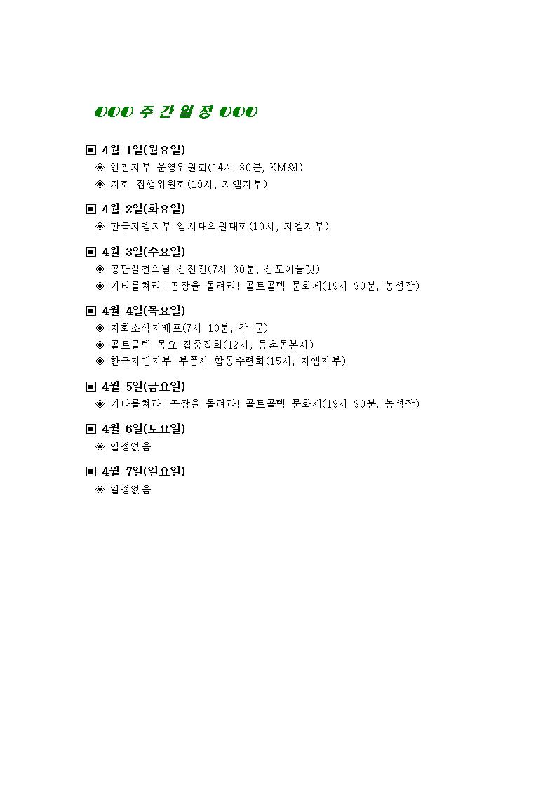[°øÁö]Çѱ¹Áö¿¥ºÎÆòºñÁ¤±ÔÁ÷Áöȸ ÁÖ°£ÀÏÁ¤(4¿ù 1ÀÏ~4¿ù 7ÀÏ)