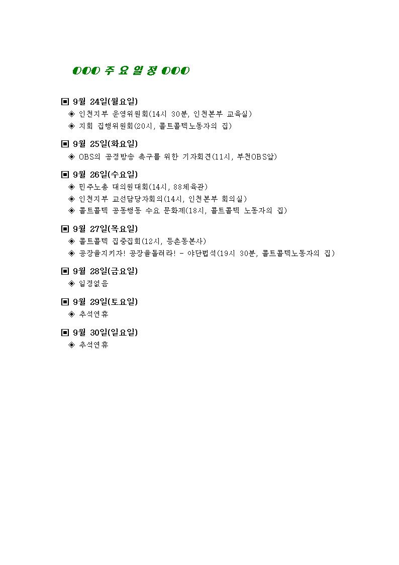 [°øÁö]Çѱ¹Áö¿¥ºÎÆòºñÁ¤±ÔÁ÷Áöȸ ÁÖ°£ÀÏÁ¤(9¿ù 24ÀÏ~9¿ù 30ÀÏ)