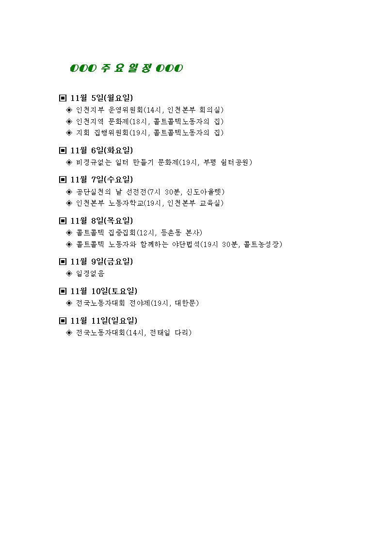 [°øÁö]Çѱ¹Áö¿¥ºÎÆòºñÁ¤±ÔÁ÷Áöȸ ÁÖ°£ÀÏÁ¤(11¿ù 5ÀÏ~11¿ù 11ÀÏ)