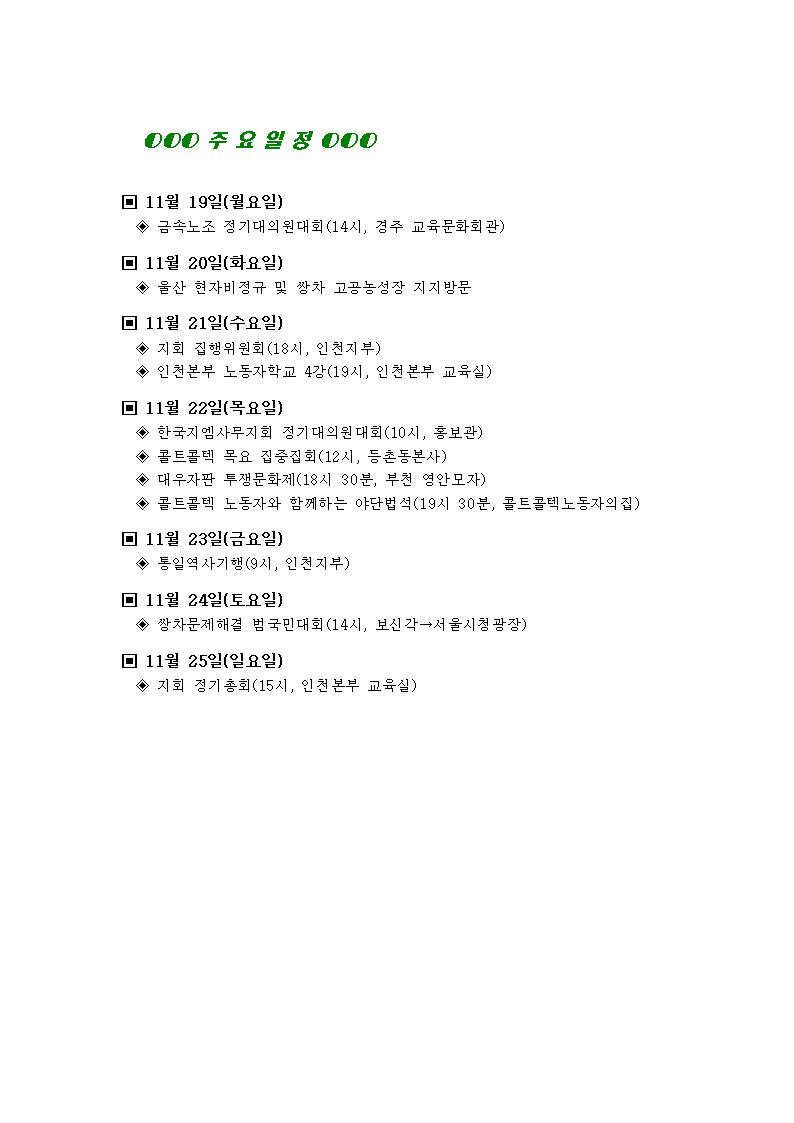 [°øÁö]Çѱ¹Áö¿¥ºÎÆòºñÁ¤±ÔÁ÷Áöȸ ÁÖ°£ÀÏÁ¤(11¿ù 5ÀÏ~11¿ù 11ÀÏ)