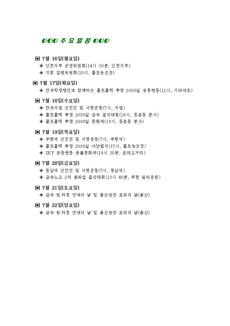 [°øÁö]Çѱ¹Áö¿¥ºÎÆòºñÁ¤±ÔÁ÷Áöȸ ÁÖ°£ÀÏÁ¤(7¿ù 16ÀÏ~7¿ù 22ÀÏ)