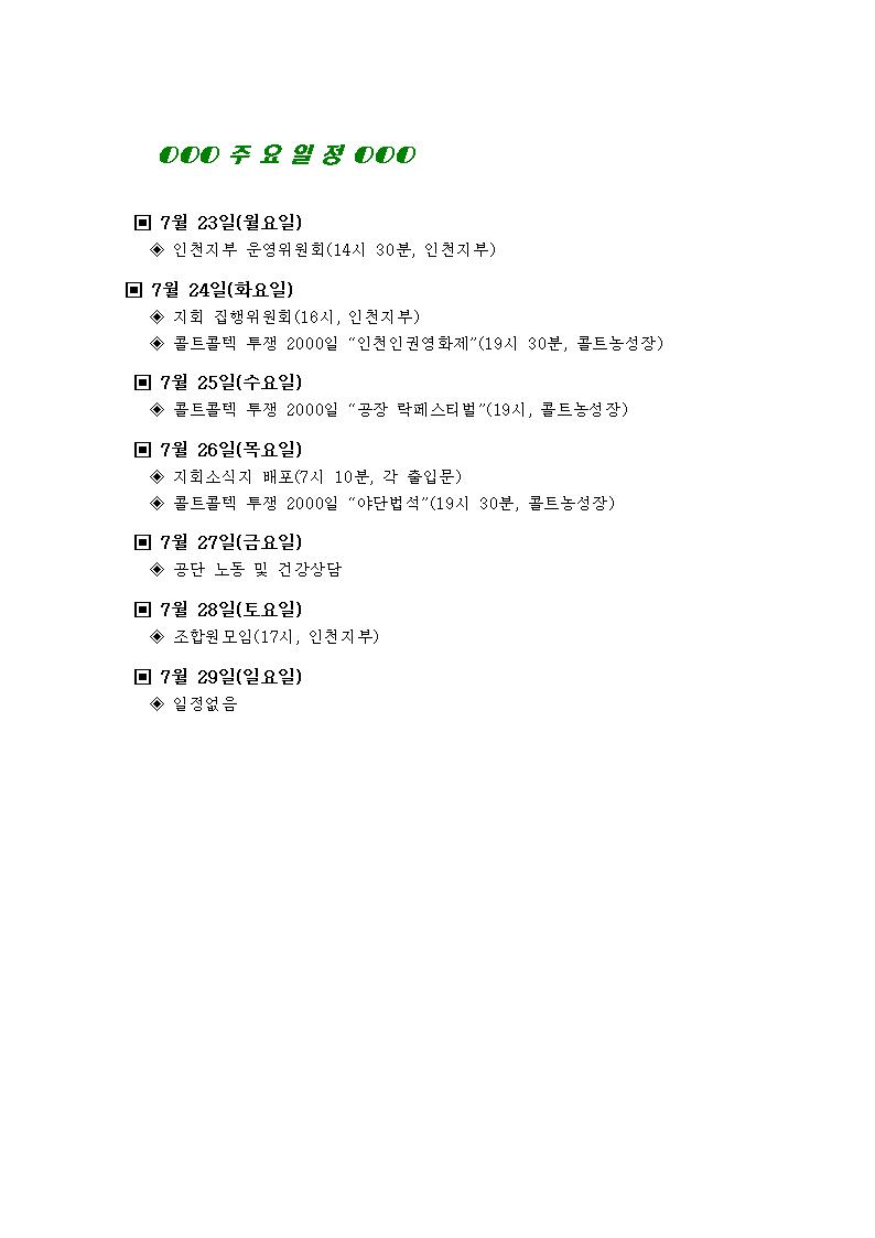 [°øÁö]Çѱ¹Áö¿¥ºÎÆòºñÁ¤±ÔÁ÷Áöȸ ÁÖ°£ÀÏÁ¤(7¿ù 23ÀÏ~7¿ù 29ÀÏ)