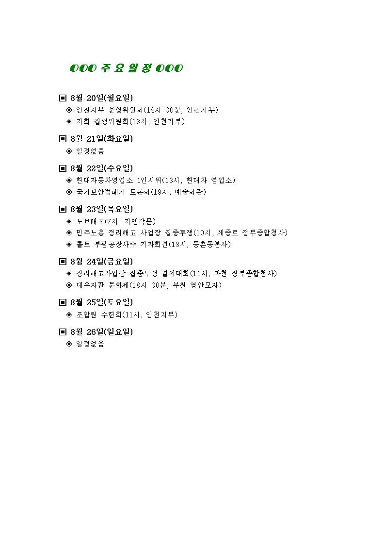 [°øÁö]Çѱ¹Áö¿¥ºÎÆòºñÁ¤±ÔÁ÷Áöȸ ÁÖ°£ÀÏÁ¤(8¿ù 20ÀÏ~8¿ù 26ÀÏ)