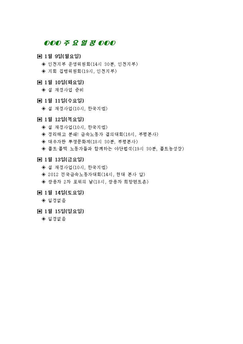 [°øÁö]Çѱ¹Áö¿¥ºÎÆòºñÁ¤±ÔÁ÷Áöȸ ÁÖ°£ÀÏÁ¤(1¿ù 9ÀÏ~1¿ù 15ÀÏ)