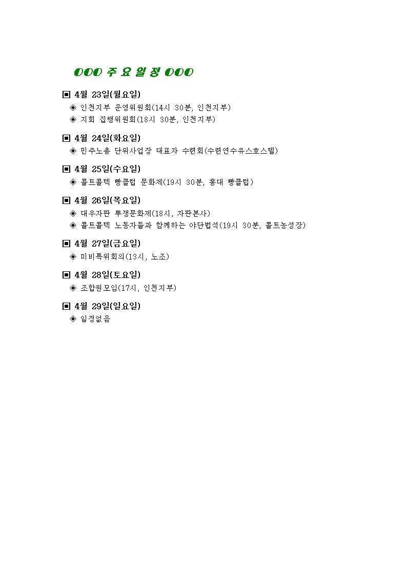 [°øÁö]Çѱ¹Áö¿¥ºÎÆòºñÁ¤±ÔÁ÷Áöȸ ÁÖ°£ÀÏÁ¤(4¿ù 23ÀÏ~4¿ù 29ÀÏ)