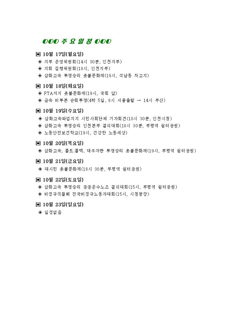 GM´ë¿ìºñÁ¤±ÔÁ÷Áöȸ ÁÖ°£ÀÏÁ¤(10¿ù 17ÀÏ ~ 10¿ù 23ÀÏ) °øÁö