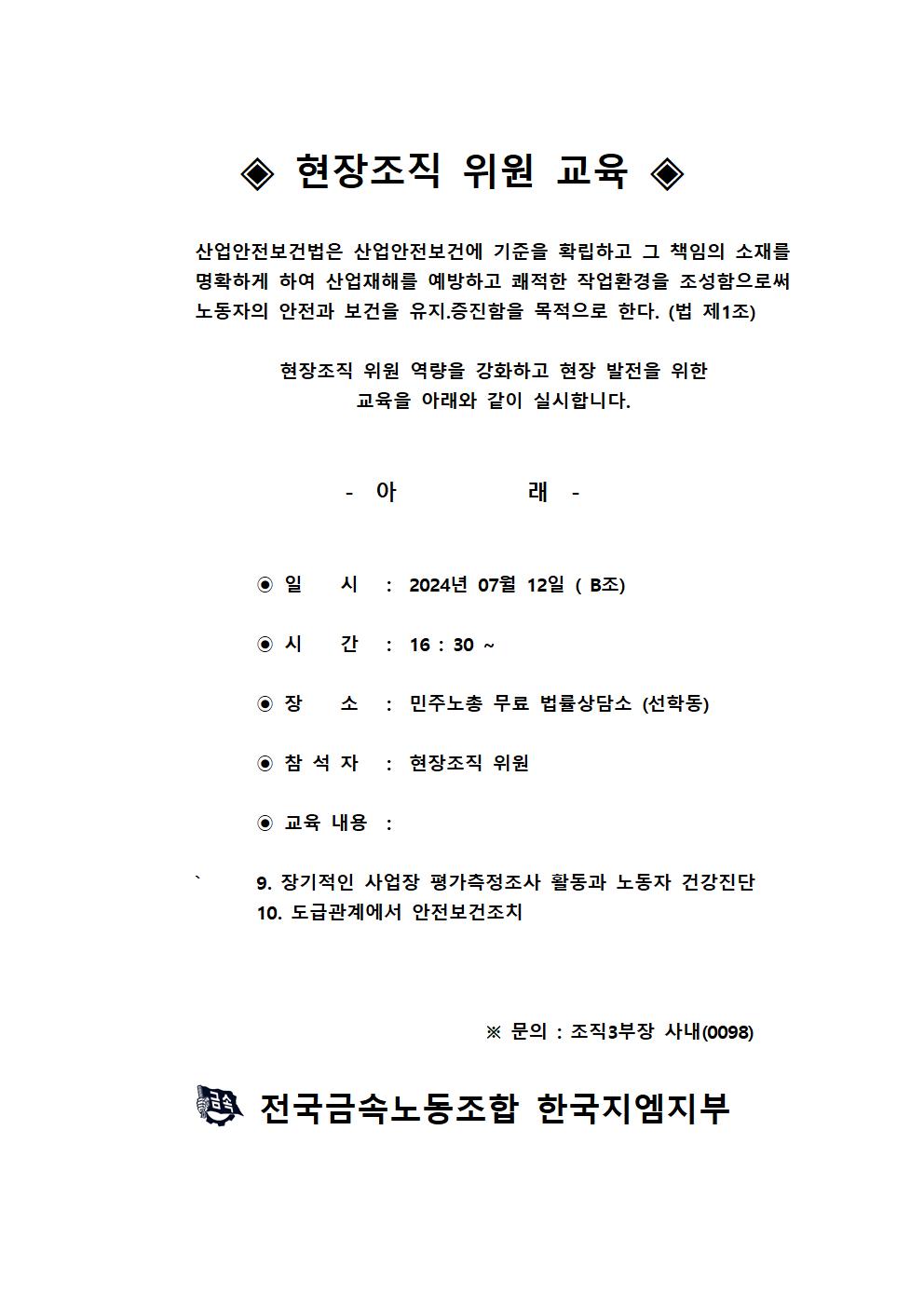 (9/6) ÇöÀåÁ¶Á÷ À§¿ø ±³À° °øÁö 7ȸÂ÷