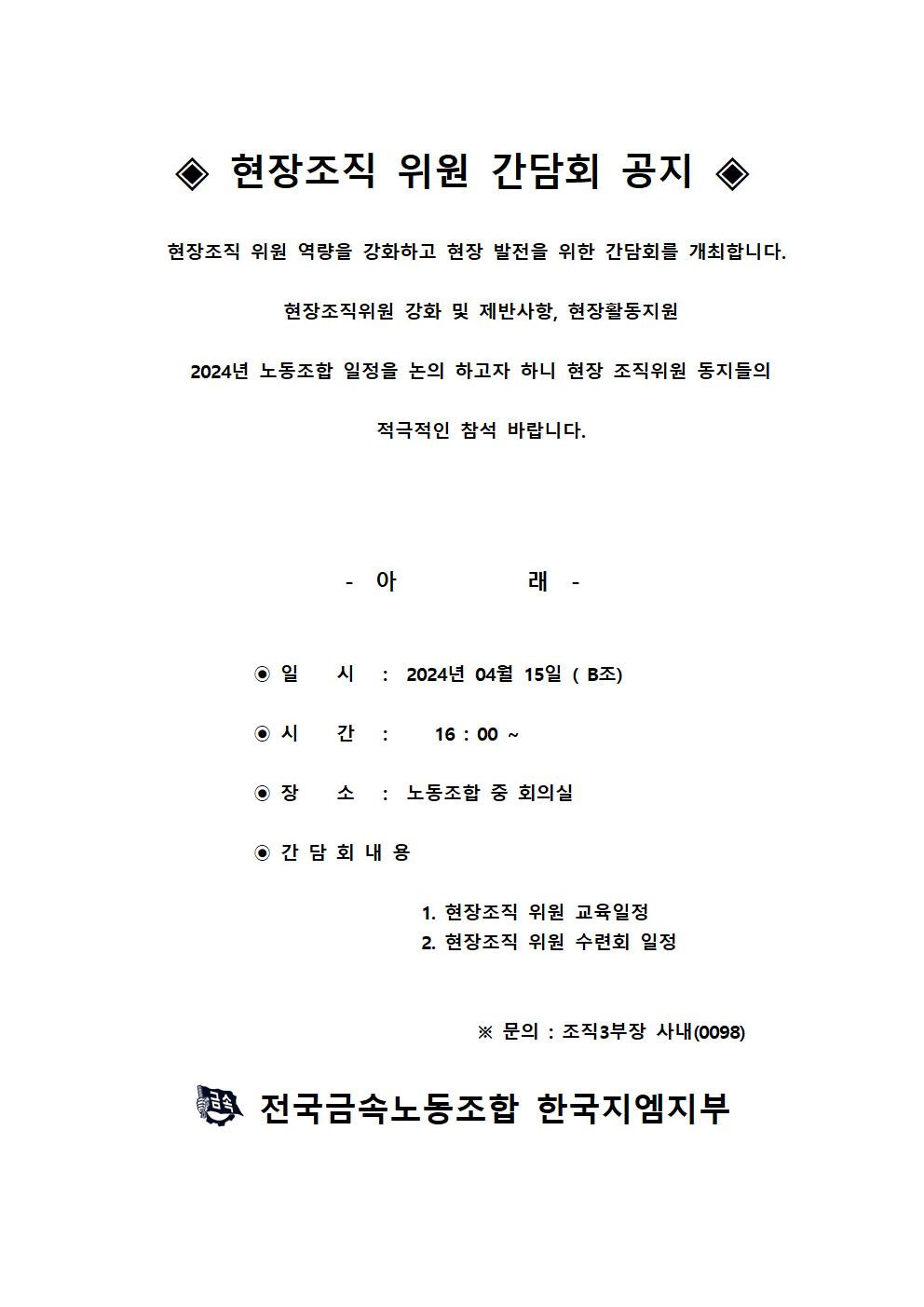 ÇöÀåÁ¶Á÷ À§¿ø °£´ãȸ °øÁö (BÁ¶) 1Â÷