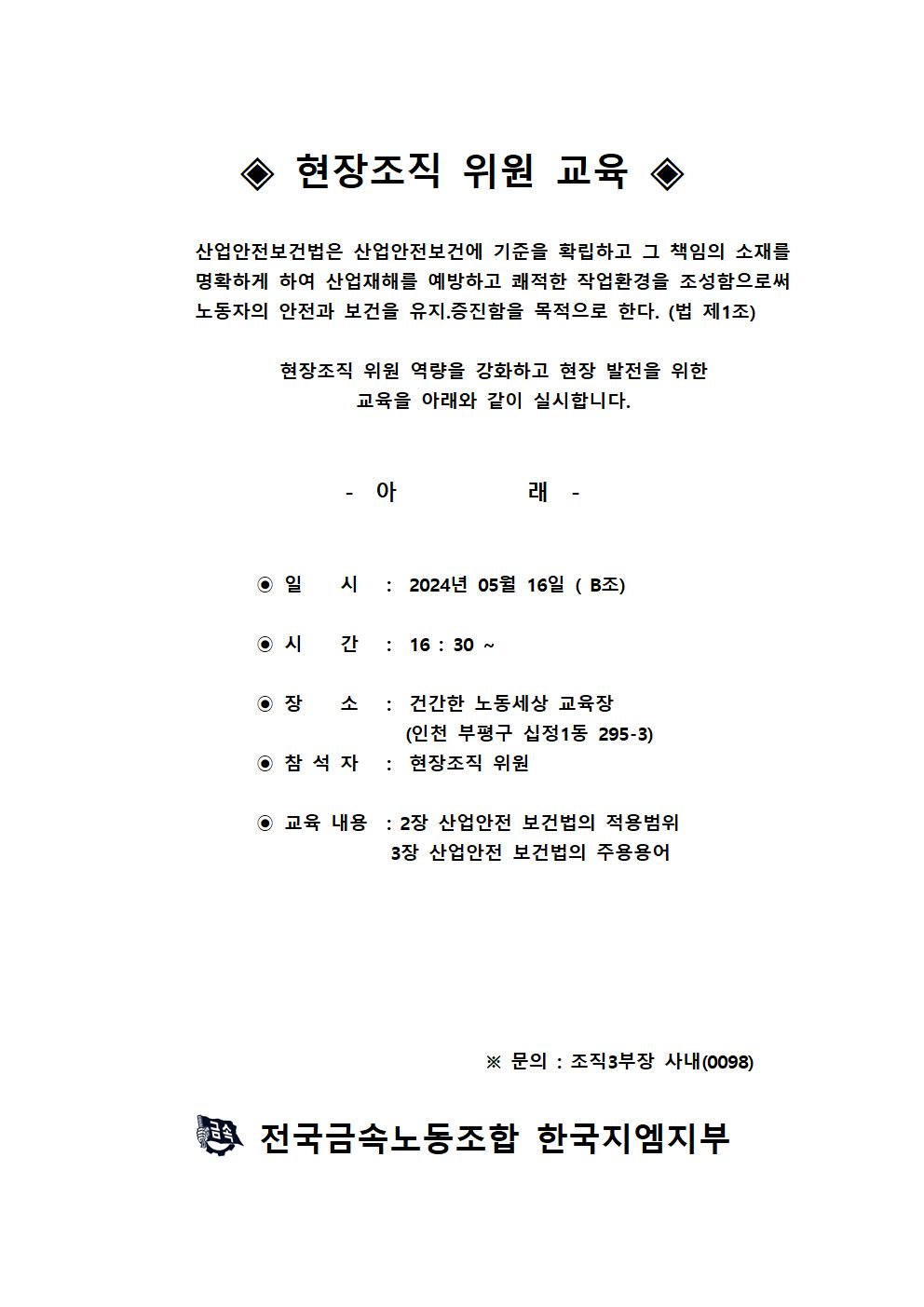 (5/16) ÇöÀåÁ¶Á÷ À§¿ø ±³À° °øÁö BÁ¶ (2ȸÂ÷)