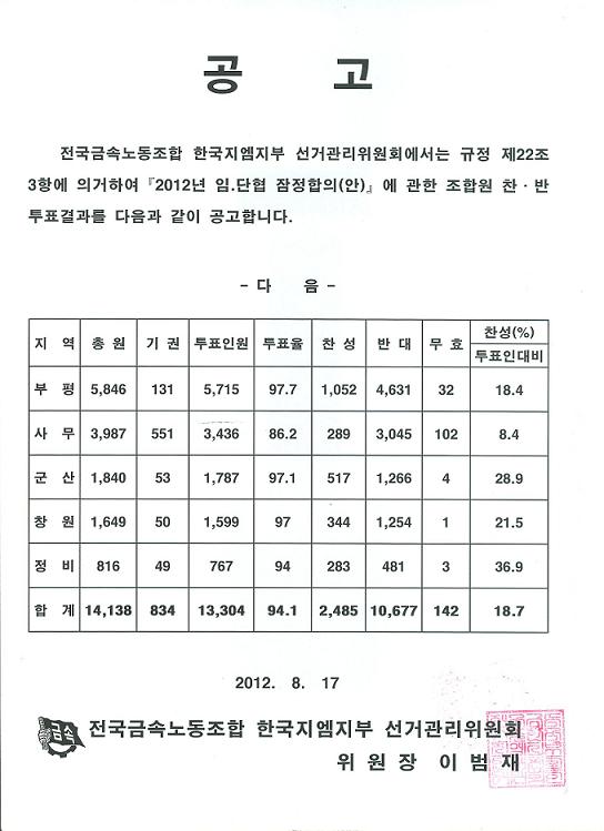 2012³â ÀÓ´ÜÇù ÀáÁ¤ÇÕÀÇ Âù¹ÝÅõÇ¥ °á°ú °ø°í