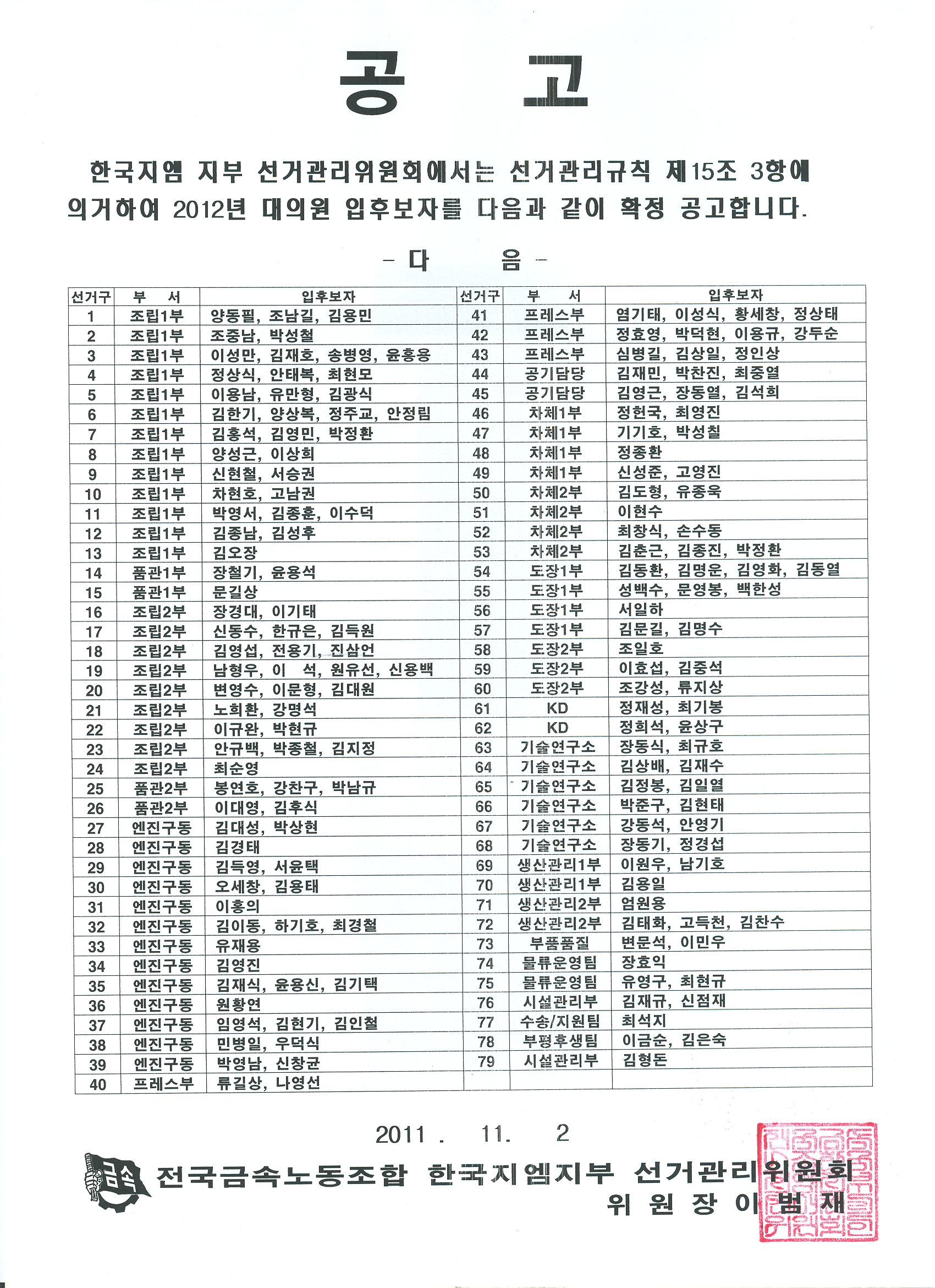 2012³â ÁöºÎ ´ëÀÇ¿ø Èĺ¸ È®Á¤ °ø°í