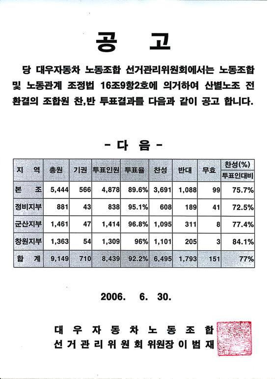 Á¶Á÷Çüꝰæ Á¶ÇÕ¿ø Âù.¹ÝÅõÇ¥ °á°ú