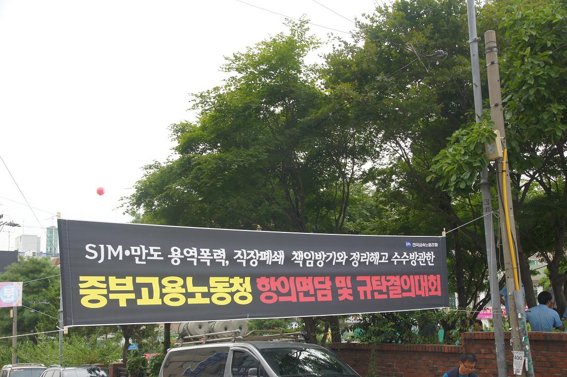 2012³â 8¿ù10ÀÏ ¸¸µµÁöºÎ ¹× SJM ¿ë¿ªÄ§Å»°ú ³ëµ¿Åº¾Ð¿¡´ëÇÑ ³ëµ¿ºÎ ±Ôź ¹× ´ëÃ¥¸¶·Ã °áÀÇ´ëȸ°¡ ÀÎõ½Ã Áß±¸ °í¿ëû ¾Õ¿¡¼ ¿·È´Ù.Çѱ¹Áö¿¥ÁöºÎ
