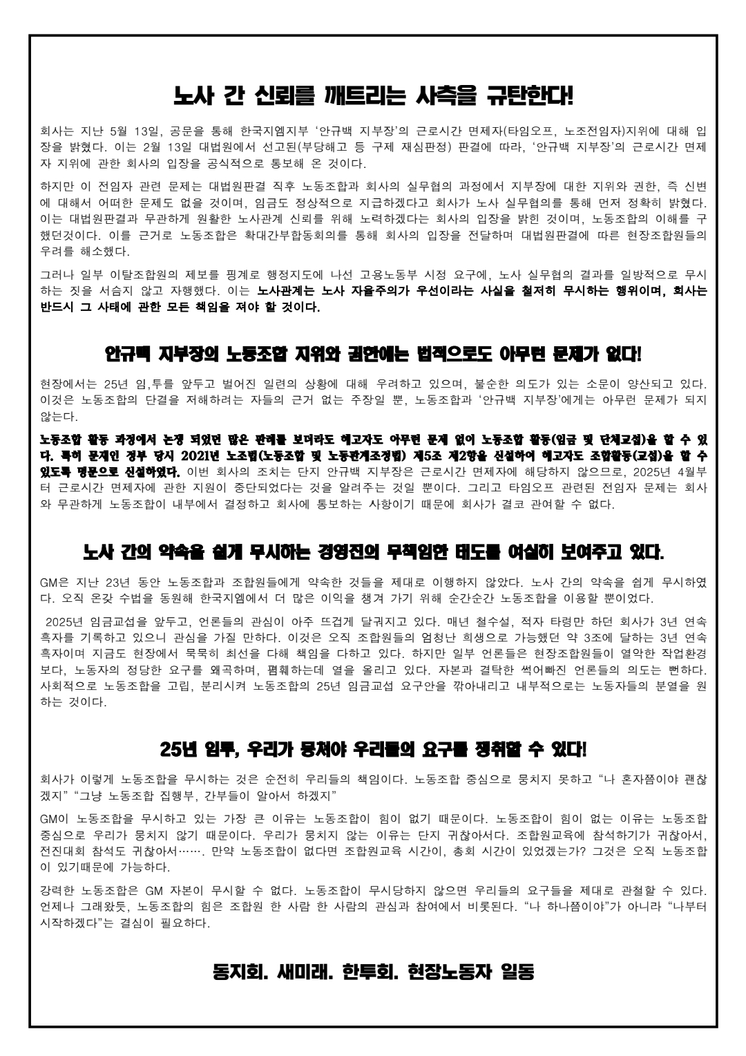µ¿Áöȸ, »õ¹Ì·¡, ÇÑÅõȸ, ÇöÀå³ëµ¿ÀÚȸ Àϵ¿
