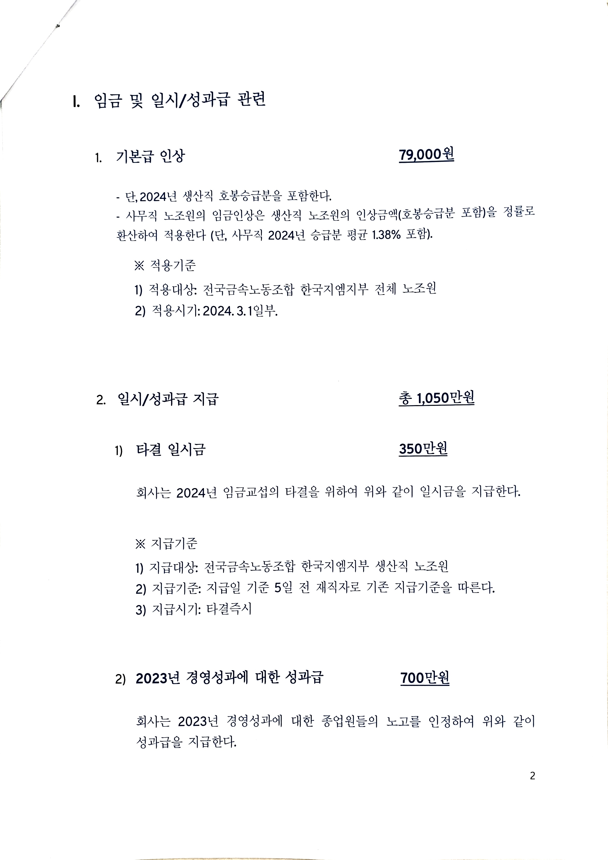 ¿À´ÃÀº Àӱݰú ¼º°ú±Þ Áß½ÉÀ¸·Î Á¦½ÃÇÑ´Ù. ¹ßÀü Àü¸Á, º°µµ ¿ä±¸, ´ÜÇù ¼öÁ¤ ¿ä±¸´Â ¾ÆÁ÷ ³»ºÎÀûÀ¸·Î ³íÀǵǰí ÀÖ´Ù. °ËÅä ÁßÀÎ »çÇ×ÀÌ´Ù. ÇÏÁö¸¸ ¿À´Ã Á¦½Ã¾È¿¡ Æ÷ÇÔµÇÁö ¾Ê¾Ò´Ù°í ÇØ¼ ÀÌ¿¡ ´ëÇÑ Á¦½Ã¾ÈÀÌ ¾ÕÀ¸·Î ³ª¿ÀÁö ¾Ê´Â´Ù´Â ¶æÀº ¾Æ´Ï´Ù. ¿ä±¸¾ÈÀÇ ±Ý¾×°ú´Â Â÷À̰¡ ¸¹ÀÌ ³¯ ¼ö ÀÖÀ» ÅÙµ¥ ¿À´Ã Á¦½Ã¾ÈÀº ù ¹øÂ° ¼º°ú±Ý, ÀÓ±Ý Á¦½Ã¾ÈÀÓÀ» ¿°µÎ ÇÏ½Ã±æ ¹Ù¶õ´Ù. (»çÃø Á¦½Ã¾È ÀÚ·á ¹èºÎ)
