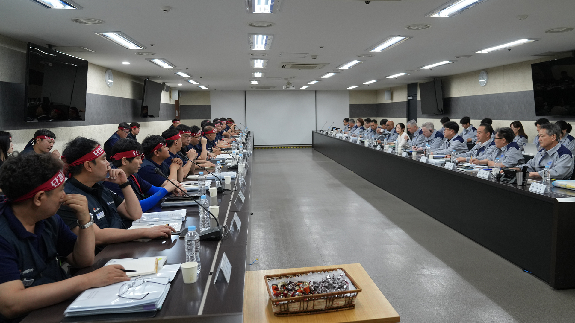 ȸ»ç´Â º¯ÇÏÁö ¾Ê´Â´Ù´Â °ÍÀ» ¶Ç´Ù½Ã ´À³¤´Ù. ³ëµ¿Á¶ÇÕÀº ¿ÃÇØ º¯ÈÇÑ ±³¼·À¸·Î Á¤»óȸ¦ À§ÇÑ ³ë»çÇù·ÂÀ» À̾߱âÇϴµ¥ ȸ»ç´Â ¾Æ´Ñ °Í °°´Ù. ÇíÅÍ »çÀåÀº º»»ç¿¡¼ ¹ÞÀº °ÍÀÌ ÀÖ´Ù¸é Àϰý Á¦½ÃÇÏ°í ³¡³»¶ó. 3Â÷ Á¦½Ã¾ÈÀº ±×Àú ¸»Àå³»ÓÀÌ´Ù. µ¿Á¾»çµé ³¡³»¼ ¸¶¹«¸® Áþ°í ÀÖ´Ù. ÇàŰ¡ ÀüÇô ¾È ¹Ù²ï´Ù. ³ëµ¿Á¶ÇÕ¸¸ ¹Ù²î¾î¼´Â ¾È µÈ´Ù. ȸ»ç°¡ »ý°¢À» ¹Ù²ã¾ß ÇÑ´Ù.