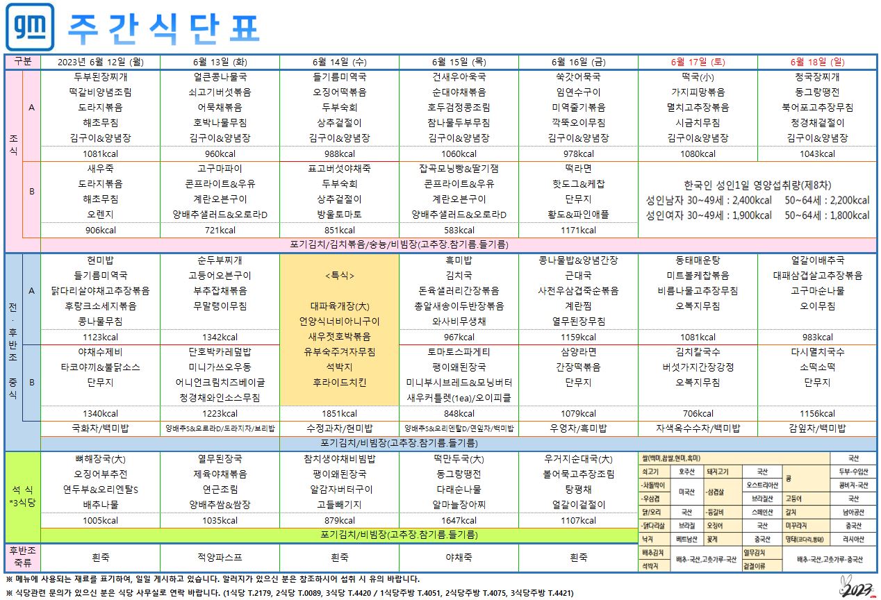 2023³â06¿ù 12ÀÏ~06¿ù 18ÀÏ ÁÖ°£½Ä´ÜÇ¥ ÀÔ´Ï´Ù.