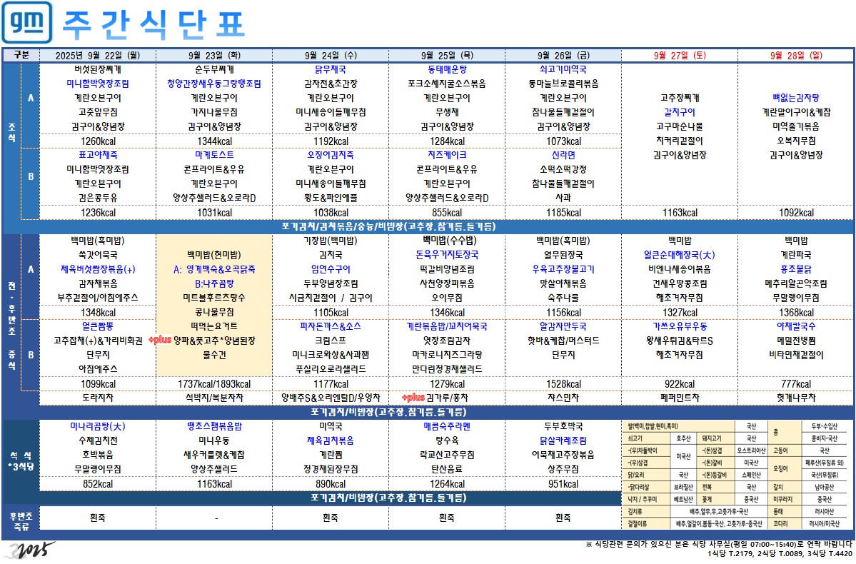 2025³â 9¿ù 22ÀÏ ~ 9¿ù 28ÀÏ ÁÖ°£½Ä´ÜÇ¥ÀÔ´Ï´Ù