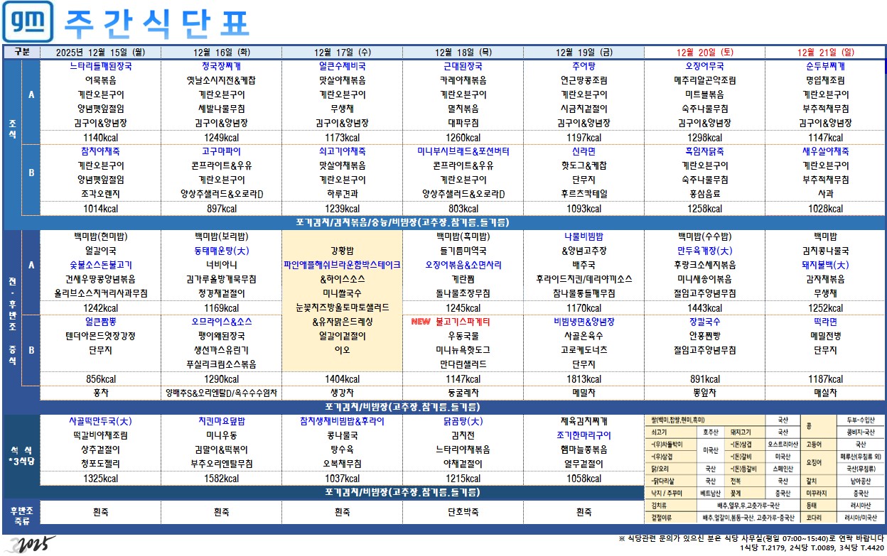 2025³â 12¿ù 15ÀÏ ~ 12¿ù 21ÀÏ ÁÖ°£½Ä´ÜÇ¥ÀÔ´Ï´Ù.