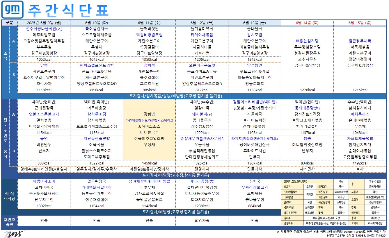 2025³â 6¿ù 2ÀÏ ~ 6¿ù 8ÀÏ ÁÖ°£½Ä´ÜÇ¥ÀÔ´Ï´Ù