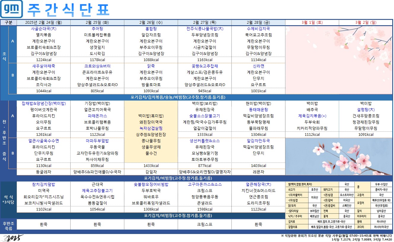 2025³â 2¿ù 24ÀÏ ~ 3¿ù 2ÀÏ ÁÖ°£ ½Ä´ÜÇ¥ ÀÔ´Ï´Ù ¡¦