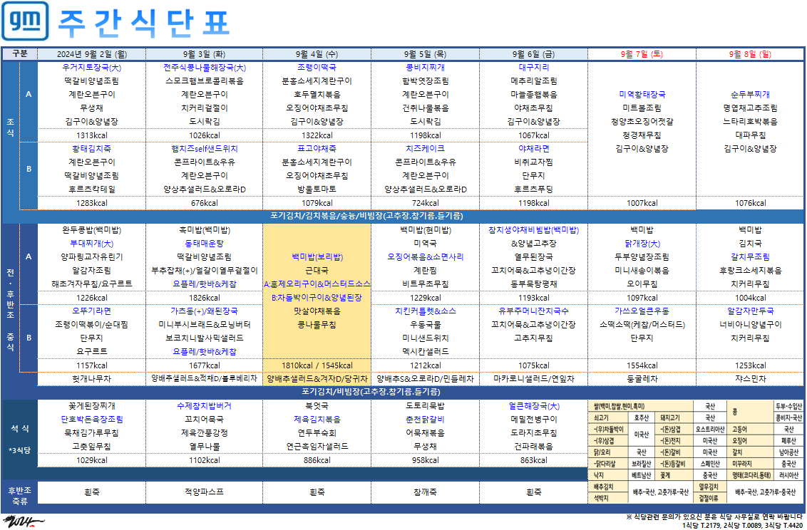 2024³â 9¿ù 16ÀÏ~9¿ù 22ÀÏ ÁÖ°£½Ä´ÜÇ¥ ÀÔ´Ï´Ù.