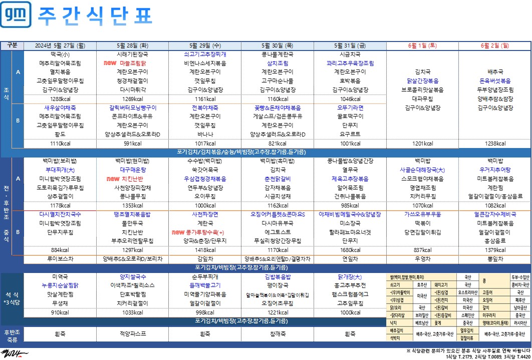 2024³â 5¿ù 27ÀÏ~6¿ù 2ÀÏ ÁÖ°£½Ä´ÜÇ¥ ÀÔ´Ï´Ù.